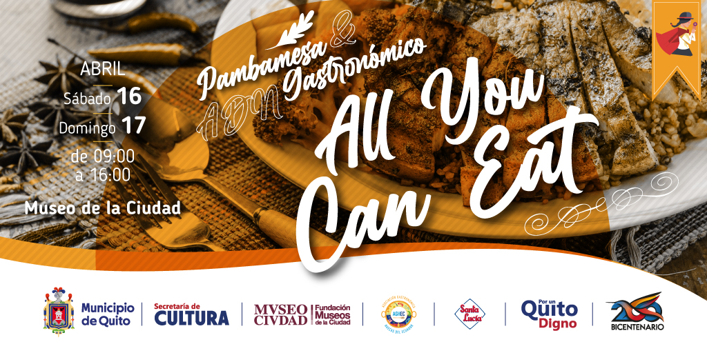 La Fundación Museos de la Ciudad, la Asociación Gastronómica Huecas del Ecuador con el auspicio de Harina Santa Lucía invitan a la ciudadanía a participar de “Pambamesa y ADN Gastronómico”, un festival de comida ancestral tradicional, que promociona la cocina Patrimonial ecuatoriana transmitida de generación en generación. El festival se realizará el sábado 16 y domingo 17 de abril, de 09:00 a 16:00, en el Museo de la Ciudad.