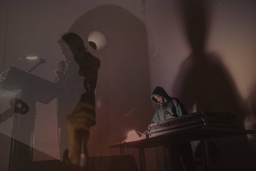 El escenario se convirtió en un laboratorio de sonidos e ideas. Con Mauricio Proaño al mando de sus máquinas electrónicas y Pablo Barriga con sus palabras y metáforas, los asistentes se sumergieron en un viaje a lo desconocido. Las palabras de Barriga cobraron vida, fusionándose con los sonidos generados por Proaño en un viaje sensorial en el que el subconsciente fluye e imagina otras lógicas para lo vivo y lo inerte.