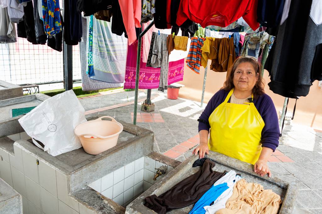 Lavandería que brinda el servicio aproximadamente hace 50 años en el sector. Está abierta desde la 7am a 3pm de lunes a viernes, cuenta con 10 piedras de lavar. La mayoría de personas que lavan son vendedorxs del Mercado de San Roque, acuden unas 20 personas a la semana, en su mayoría son hombre los que lavan la ropa. En la zona centro hay 15 lavanderías municipales y 2 funcionan con administración municipal, el resto están entregadas a los barrios.